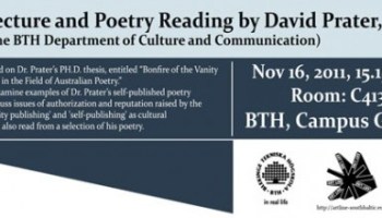 Lecture Title: “Bonfire of the Vanity Presses – Publishing and Self-Publishing in the Field of Poetry,” presented by David Prater, Ph.D. (Post-Doctoral Researcher, BTH, Department of Culture and Communication)